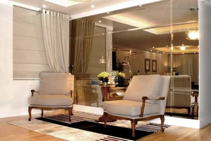 • Aumentam a luminosidade: Refletindo a luz natural ou artificial, os espelhos tornam a sala mais clara, vibrante e acolhedora, o que é ótimo para os dias mais frios e nublados de Curitiba.